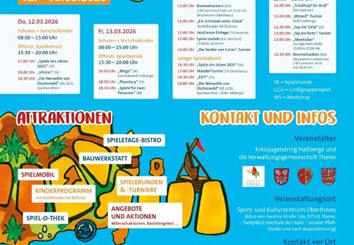 Vom 12. bis 15.03.2026 finden die Haßberger Spieletage in Obertheres im Sport- und Kulturzentrum Theres statt – ein familienfreundliches Großereignis mit überregionaler Strahlkraft. An mehreren Tagen werden Besucherinnen und Besucher aus dem ganzen Landkreis erwartet, um gemeinsam zu spielen, Neues zu entdecken und unsere Gemeinschaft zu erleben. Es werden auch Vereine der Gemeinden Gädheim, Wonfurt und Theres als Veranstalter zu finden sein.